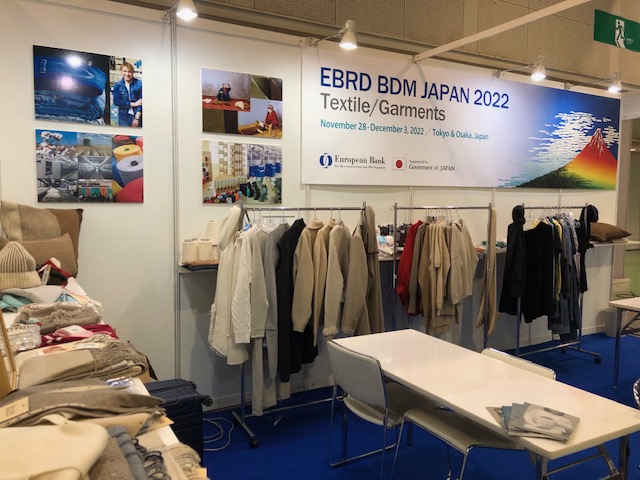 EBRD had their booth at JIAM 2022 OSAKA (Japan International Apparel Machinery & textile Industry Trade Show) https://jiam-show.com/en . There, the delegate displayed their products, such as, cotton yarn and Cashmere yarn and its knitted products to the visitors. They visited booths of other exhibitors as well. Among them;
